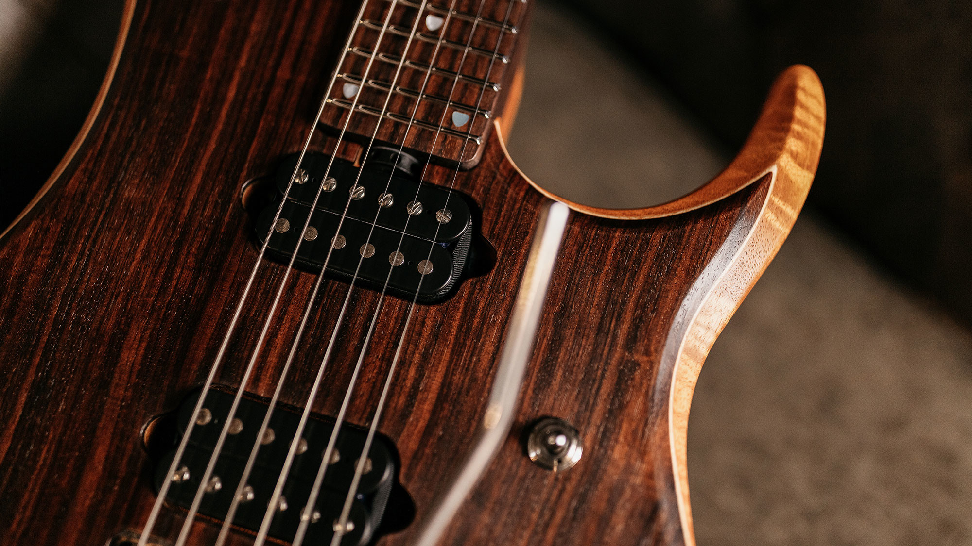 Never before offered HSS pickup configuration with DiMarzio bridge pickup and 2 Ernie Ball Music Man single-coil pickups.