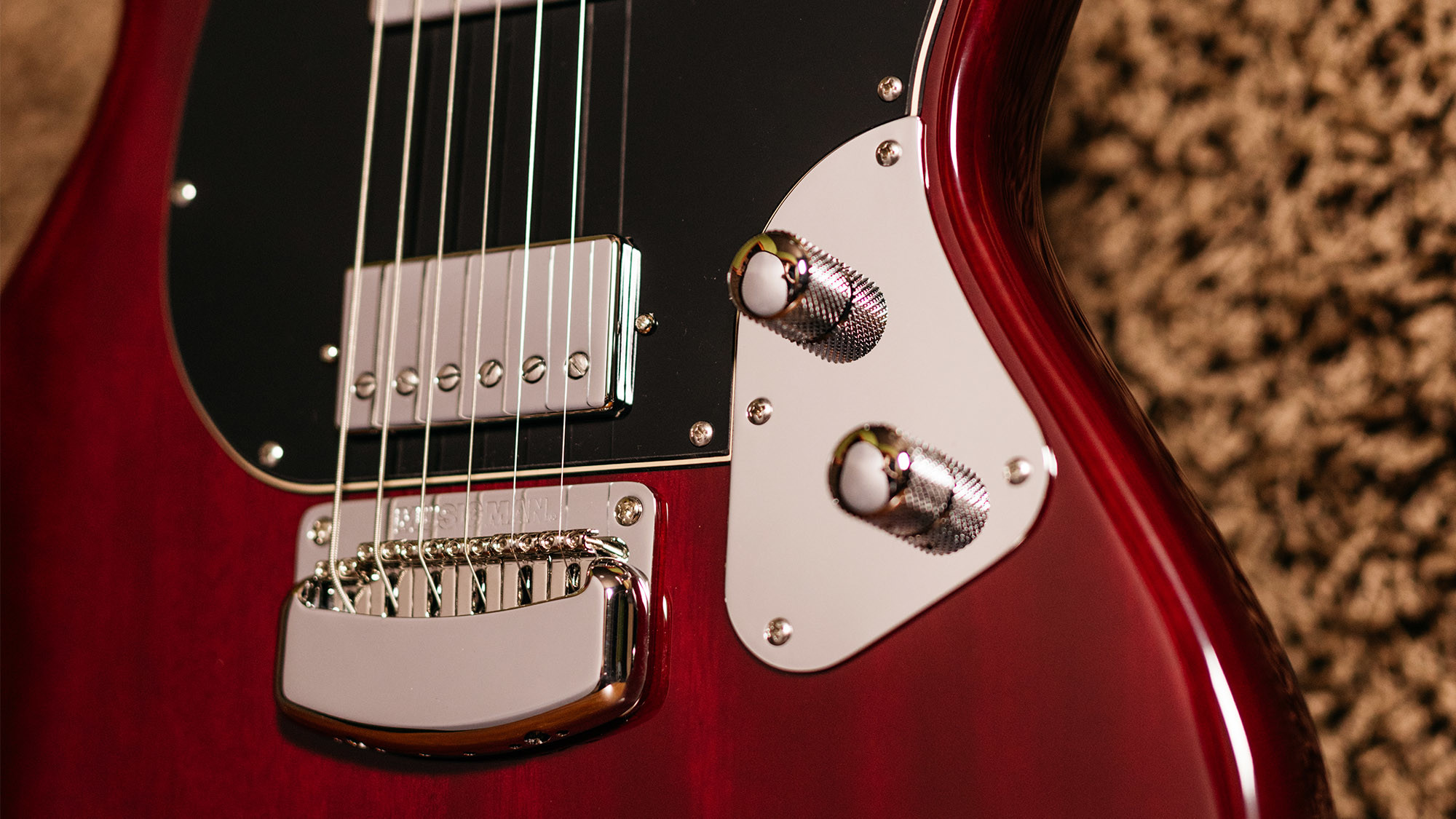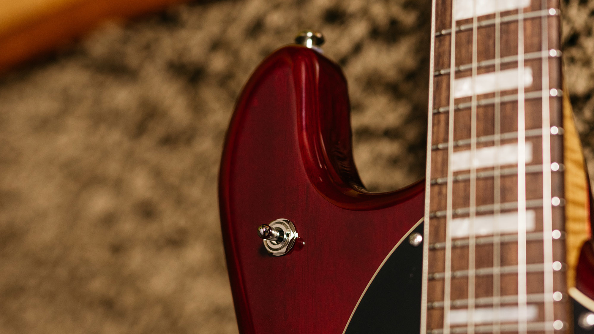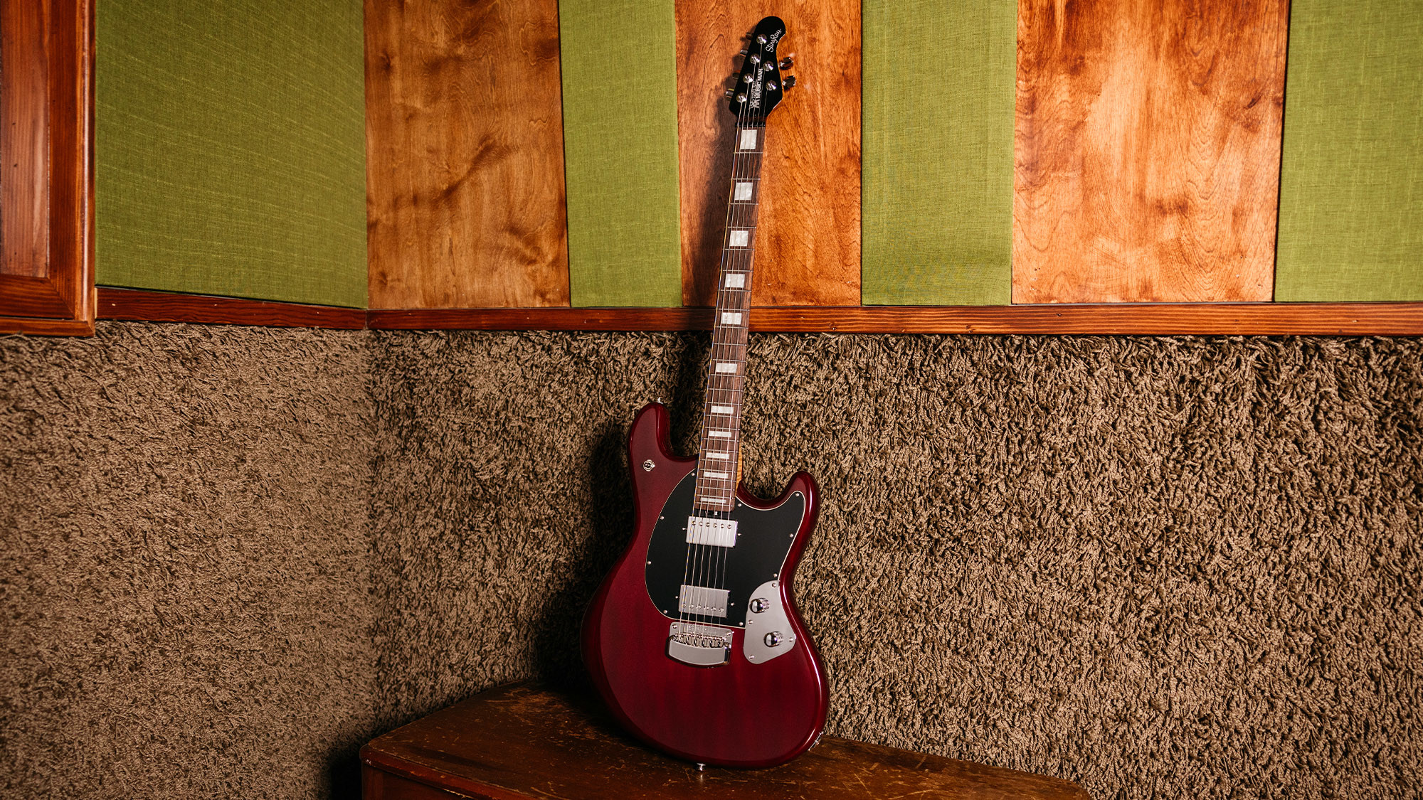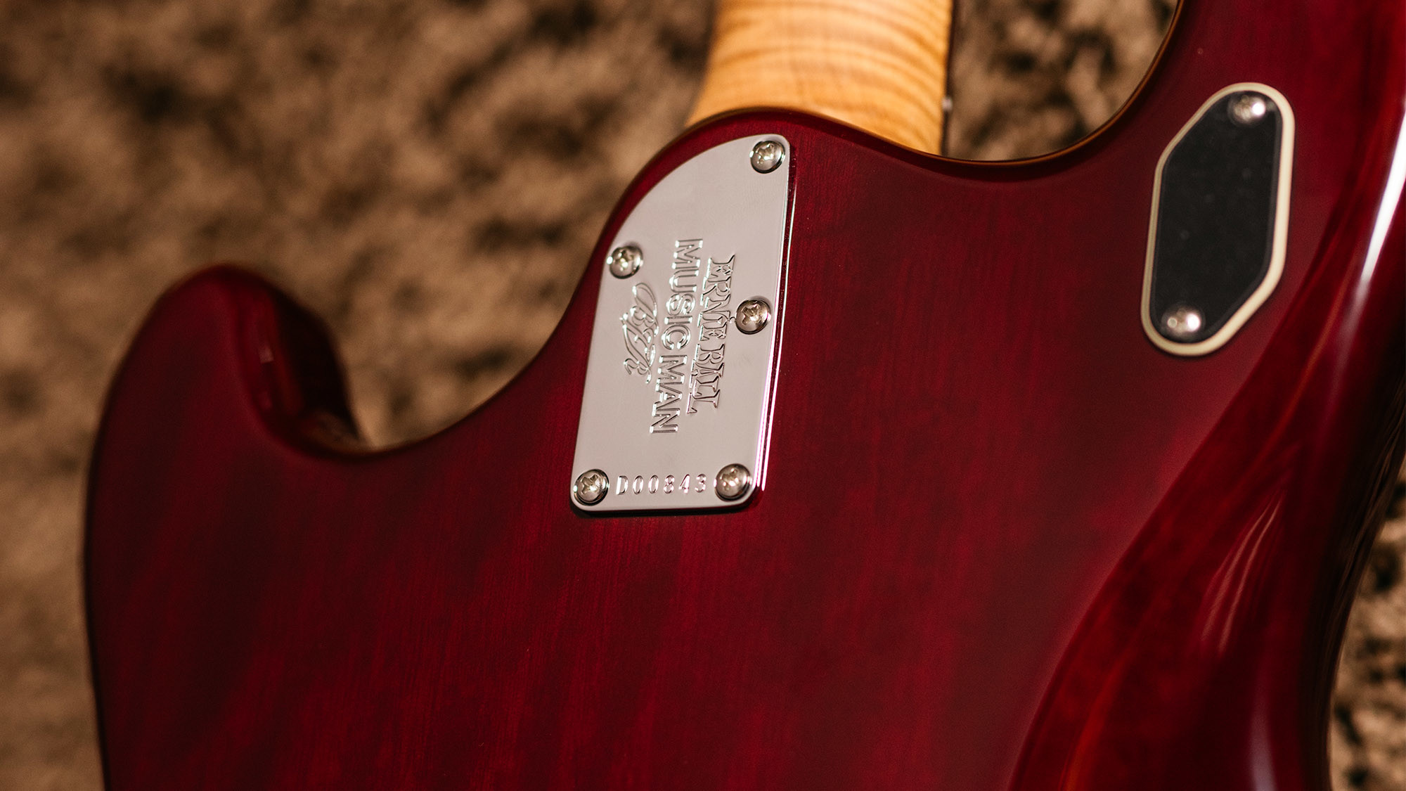 The all-new Ball Family Reserve Baritone StingRay guitar is limited to just 50 units worldwide. With a 27.5" scale length and tuned B-B, this guitar offers exceptional tonal depth and versatility. Its Okoume body in a striking translucent Oxblood finish showcases the wood’s natural beauty, while the roasted figured maple neck with an oil and wax finish ensures smooth playability and stability. The 24 stainless steel frets and rosewood fretboard adorned with white pearloid block inlays provide both durability and classic aesthetics. The hardtail string-through-body bridge ensures solid sustain, and the custom humbucking pickups deliver a powerful, clear tone that captures the rich, extended range of the baritone without getting muddy or woofy.