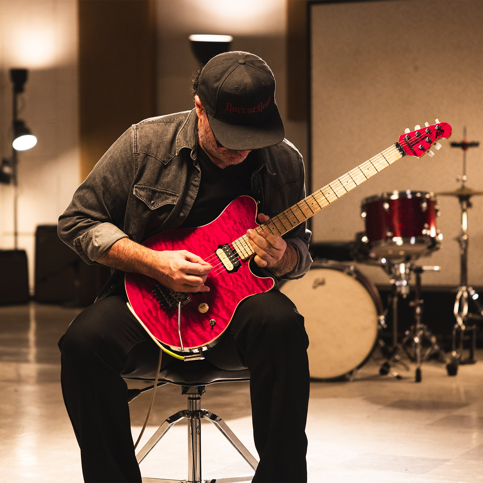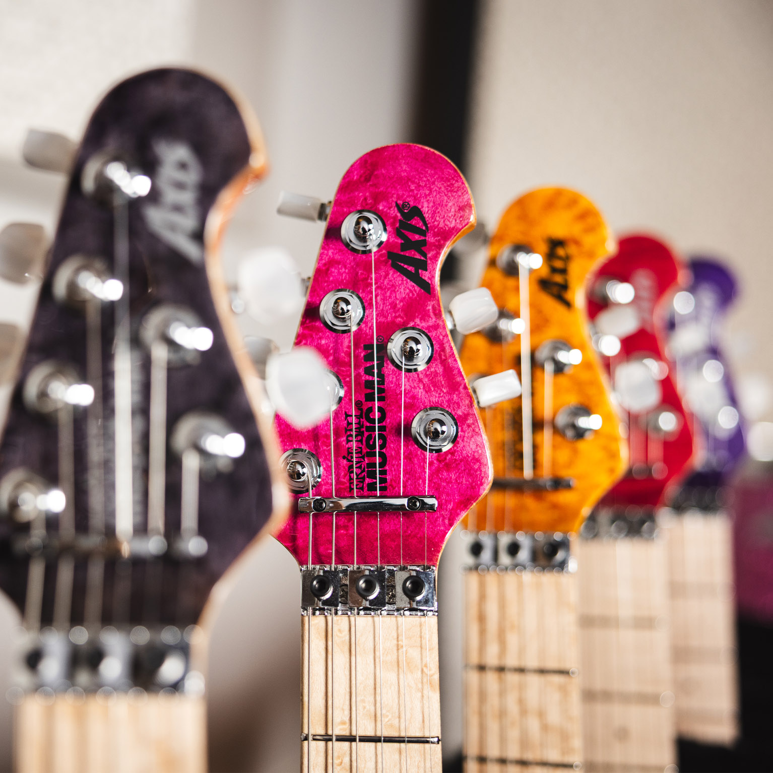 Celebrating 30 years of the Axis, this limited edition collection revisits the iconic translucent finishes of its 1996 debut. Each hand stained quilt maple top, available in Gold, Black, Pink, Red, Blue, and Purple, is paired with a black, lightly sparkled back that subtly echoes the top’s hue. Built to the original specs, these guitars feature the classic asymmetrical neck carve, 22 stainless steel frets, and glow in the dark side dots on a figured maple neck. Equipped with the legendary custom wound DiMarzio® pickups and finished with a color matched headstock and a commemorative 30th Anniversary logo, each instrument includes a certificate of authenticity and a deluxe hardshell case.