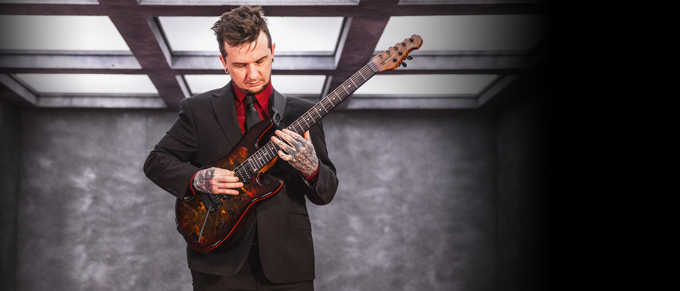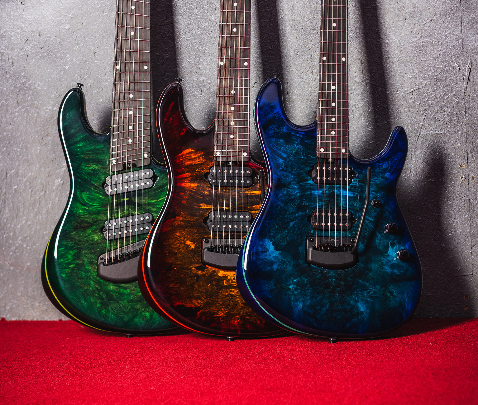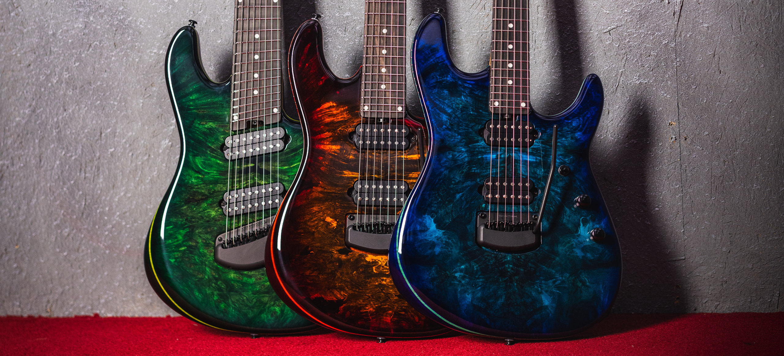 The 2026 Jason Richardson Signature guitar collection is here. Featuring bold new finishes and an all-new 8-string hardtail, these guitars pair striking aesthetics with modern, high-performance design. Crafted with an alder body, buckeye burl top, and a roasted figured maple neck with an ebony fretboard, this new lineup spans 6-, 7-, and 8-string configurations and comes in three stunning finishes—Kokiri Forest, Water Temple, and Death Mountain. Exclusive Jason Richardson HT humbuckers deliver unmatched clarity and power, complemented by 24 stainless steel frets, innovative push/push electronics, and a custom Music Man tremolo on 6- and 7-string models. The 8-string model features a hardtail bridge and is designed for modern technical players, with a multiscale 25.5"–27" scale length—from the high E to the low F#—providing exceptional clarity, tension, and articulation across its extended range. Built for precision and expression, this new lineup meets the demands of today’s most discerning players.