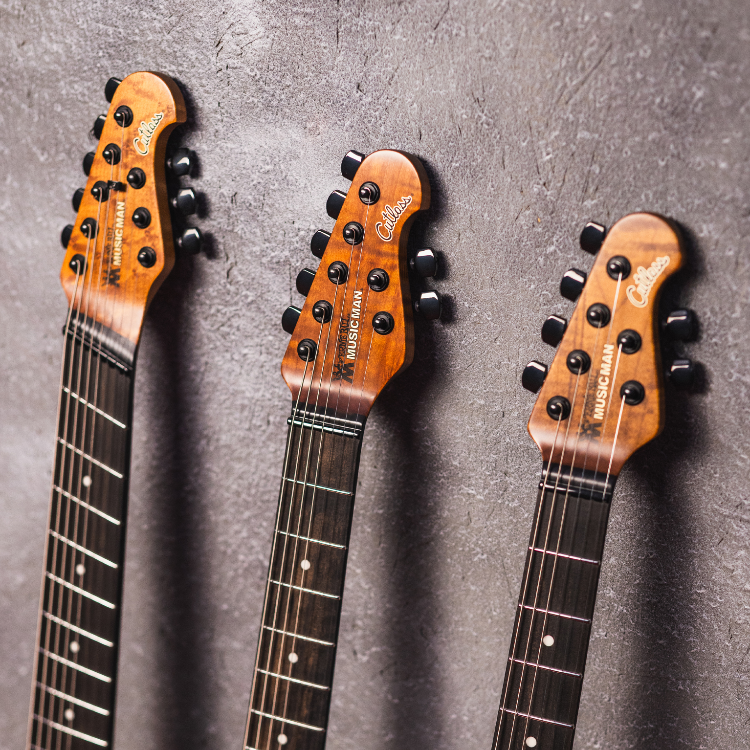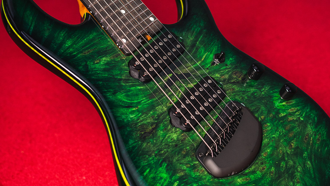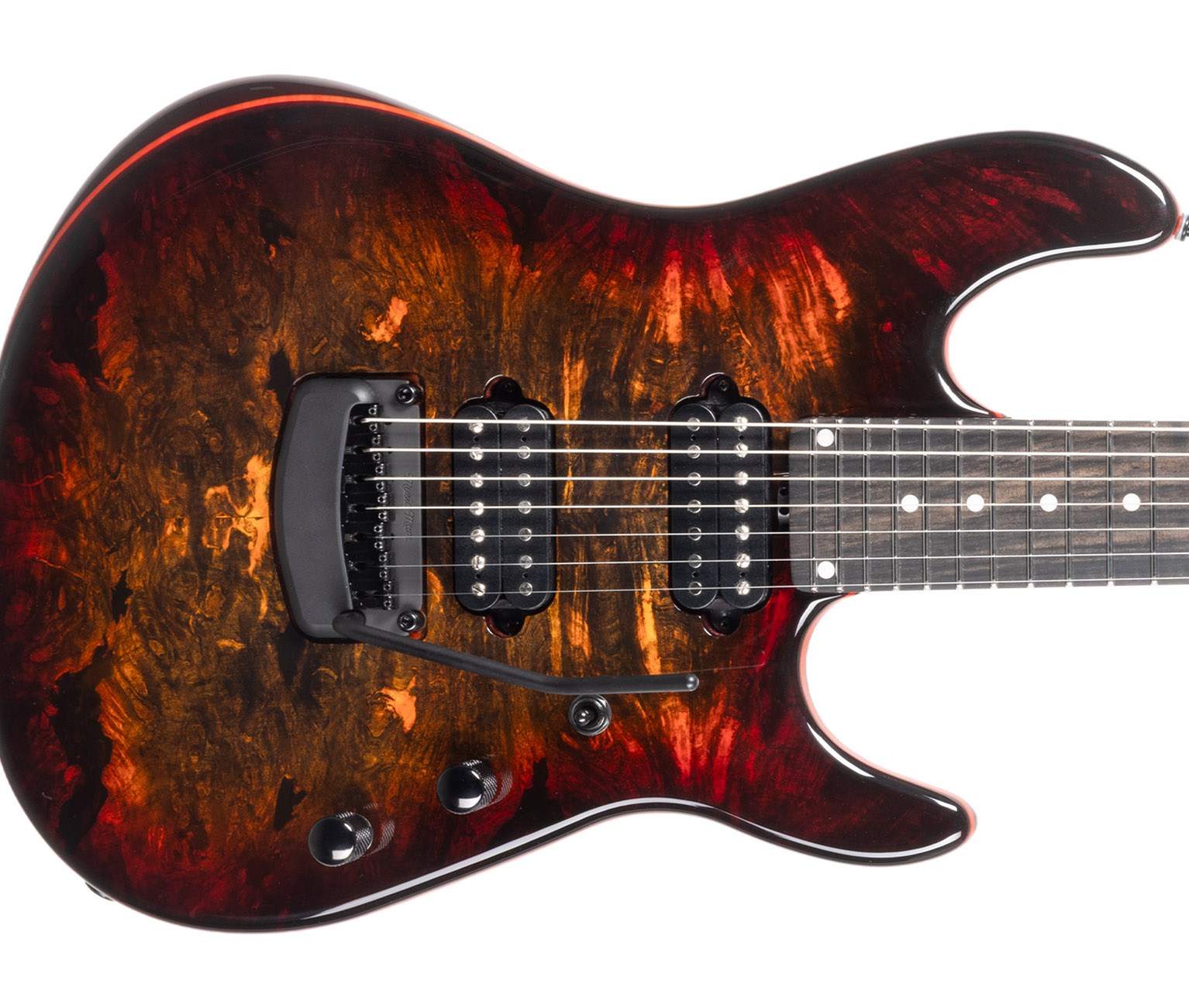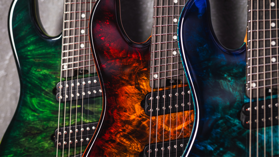 The 2026 Jason Richardson Signature guitar collection is here. Featuring bold new finishes and an all-new 8-string hardtail, these guitars pair striking aesthetics with modern, high-performance design. Crafted with an alder body, buckeye burl top, and a roasted figured maple neck with an ebony fretboard, this new lineup spans 6-, 7-, and 8-string configurations and comes in three stunning finishes—Kokiri Forest, Water Temple, and Death Mountain. Exclusive Jason Richardson HT humbuckers deliver unmatched clarity and power, complemented by 24 stainless steel frets, innovative push/push electronics, and a custom Music Man tremolo on 6- and 7-string models. The 8-string model features a hardtail bridge and is designed for modern technical players, with a multiscale 25.5"–27" scale length—from the high E to the low F#—providing exceptional clarity, tension, and articulation across its extended range. Built for precision and expression, this new lineup meets the demands of today’s most discerning players.